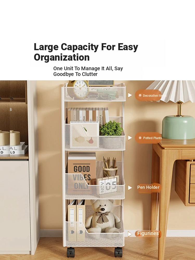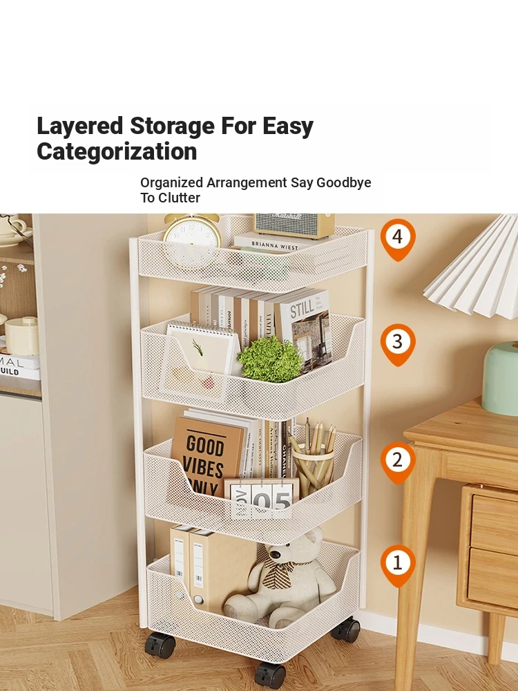 Mobile Rolling Bookshelf Cart for Office - Floor-standing File Organizer with Wheels, Perfect for Students & Stationery Storage Solutions