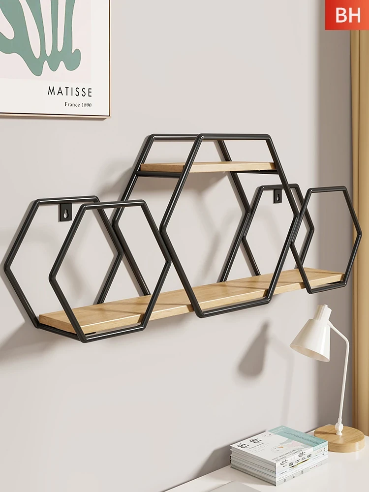 No-Drill Wall-Mounted Iron Art Decor - Stylish Storage Rack for Bedroom, Desk, Entryway, and TV Background - Perfect for Organizing Your Space
