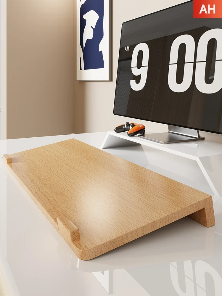Solid Wood Desktop Monitor Stand - Elevate Your Workspace with This Stylish and Functional Desk Organizer for Computers, TVs, and More! Perfect for Enhancing Ergonomics and Maximizing Desk Space.