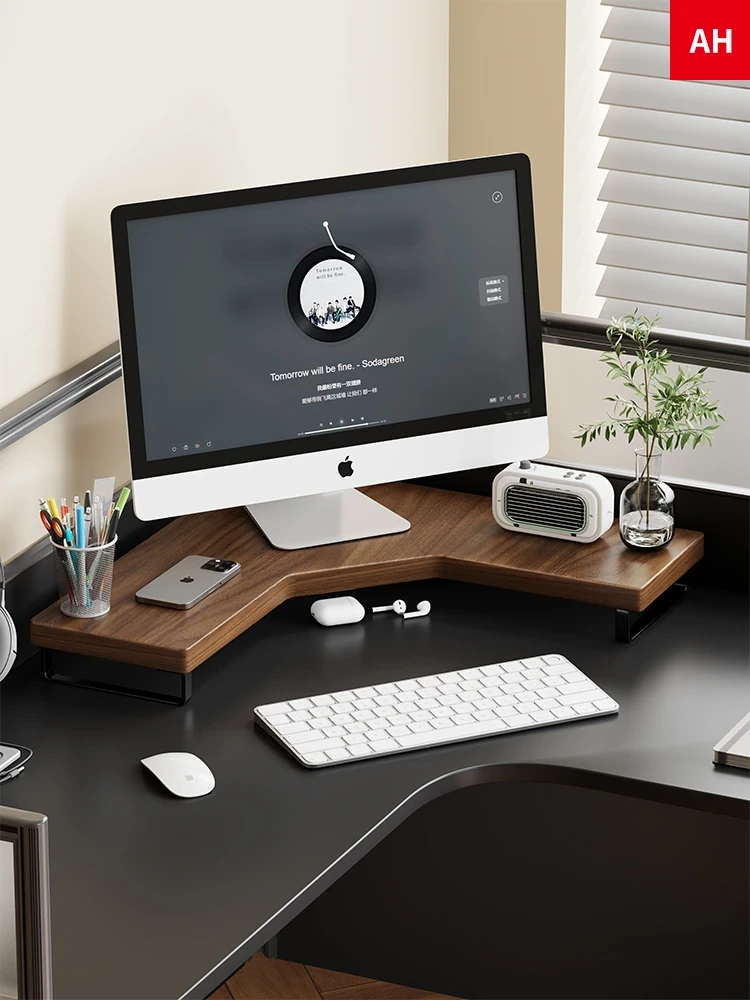 Solid Wood Corner Computer Monitor Stand - Elevate Your Workspace with This Stylish Desk Organizer for Laptops and Desktop Displays - Perfect for Office Use and Maximizing Space