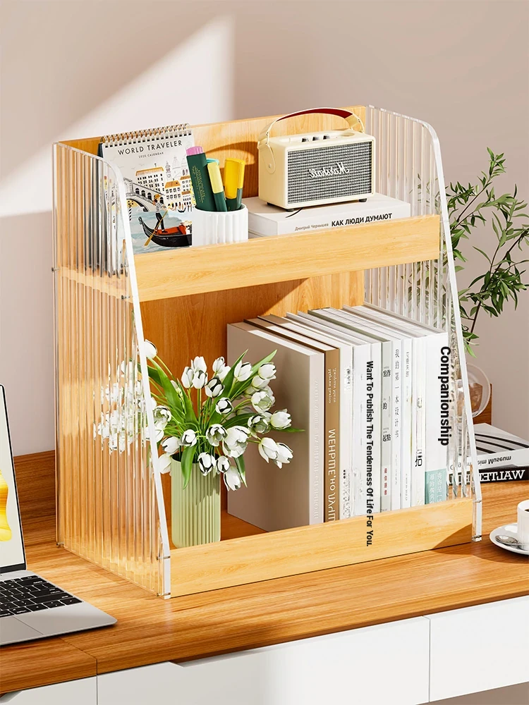Multi-Tier Acrylic Desktop Bookshelf - Stylish Home Storage Organizer for Office Files and Documents, Perfect for Organizing Your Workspace!