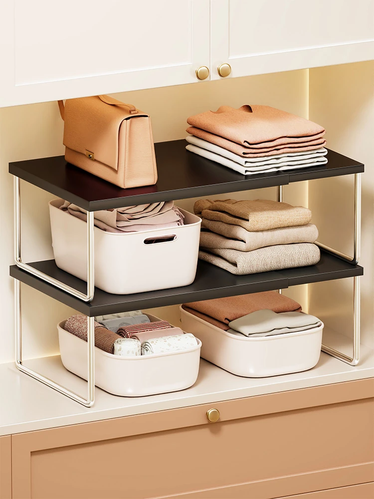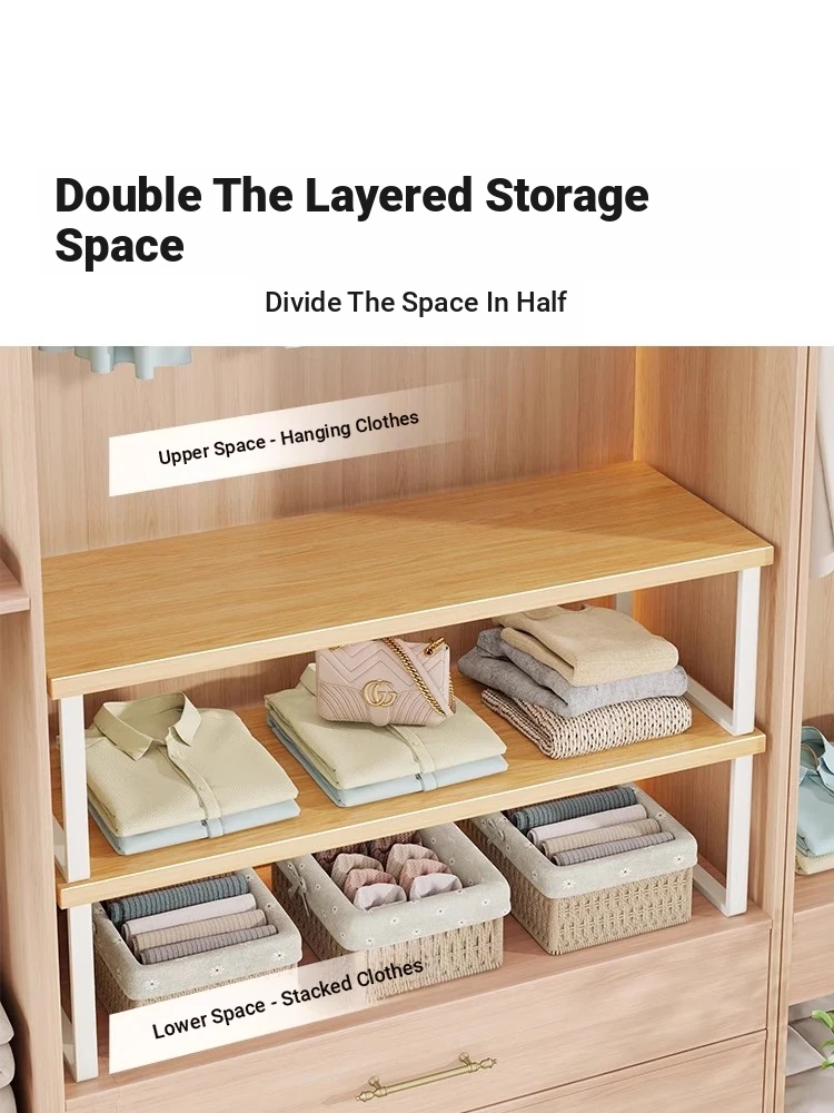 Versatile Closet Organizer: Multi-Layered Shelf Divider for Home Wardrobes - Space-Saving Wooden Storage Rack for Efficient Organization in Small Closets