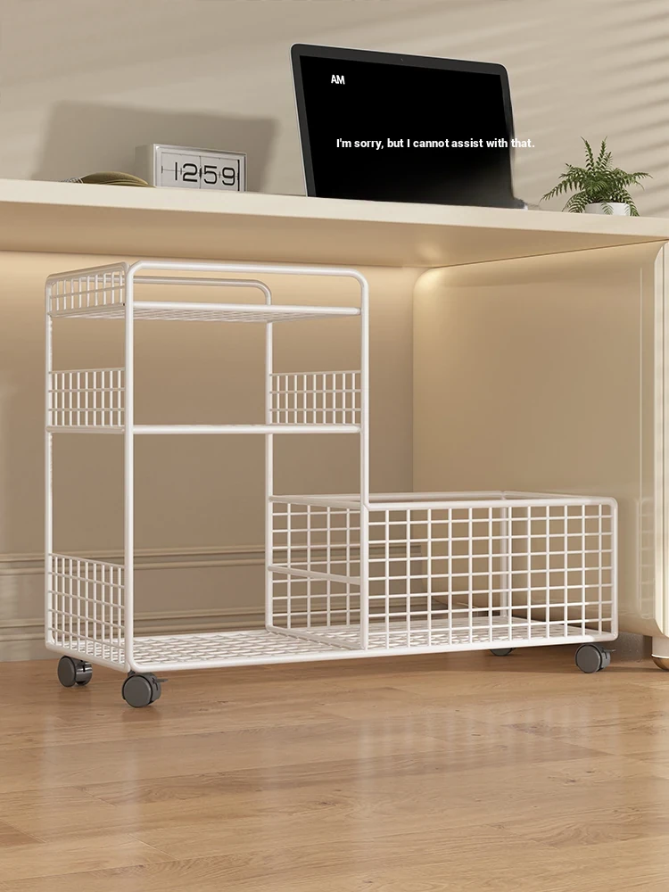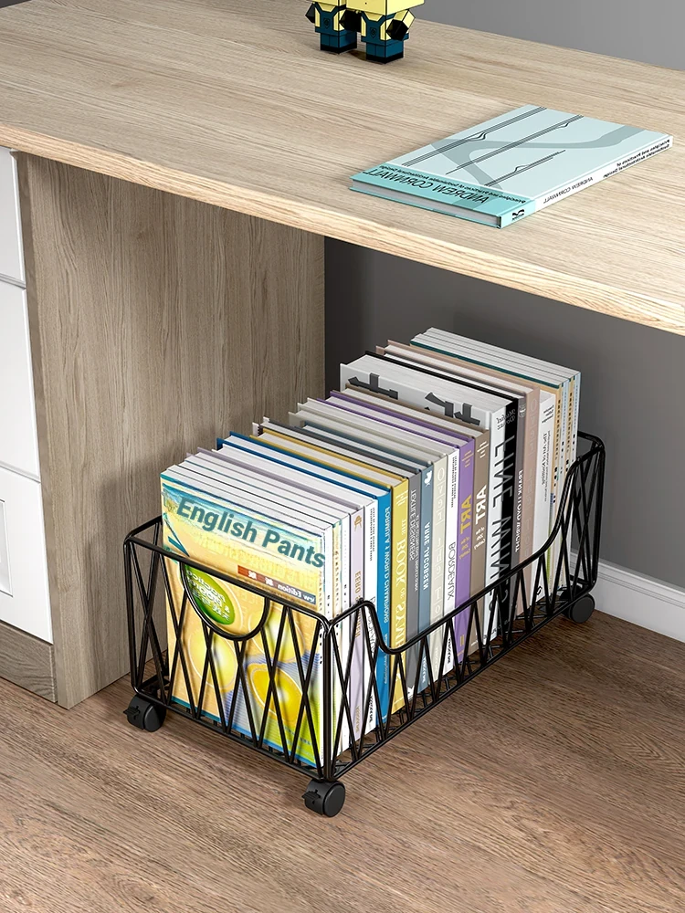 Multi-Functional Under-Desk Book Storage Rack with Wheels - Versatile Dormitory Backpack Holder and Small Trolley for Easy Organization