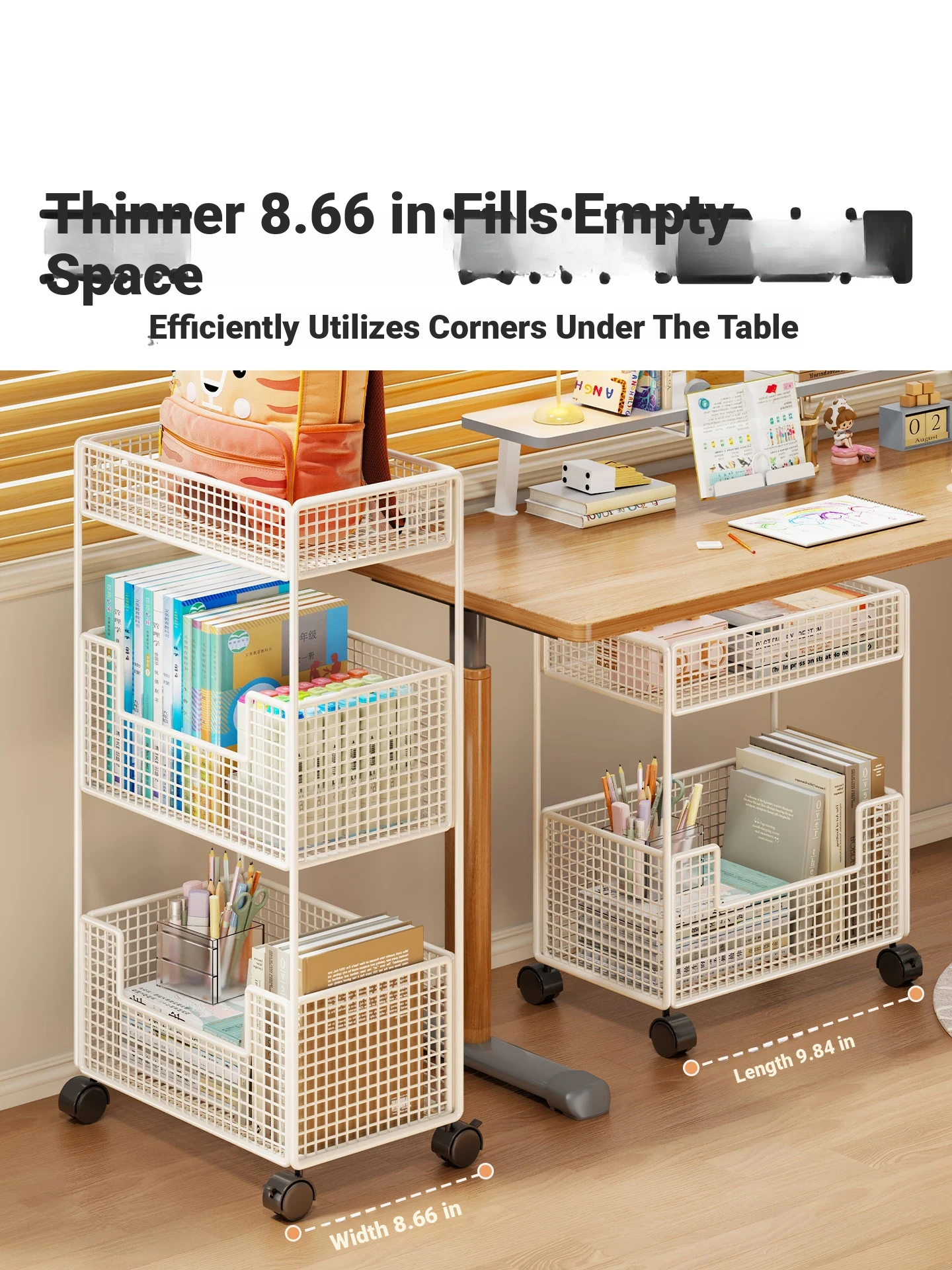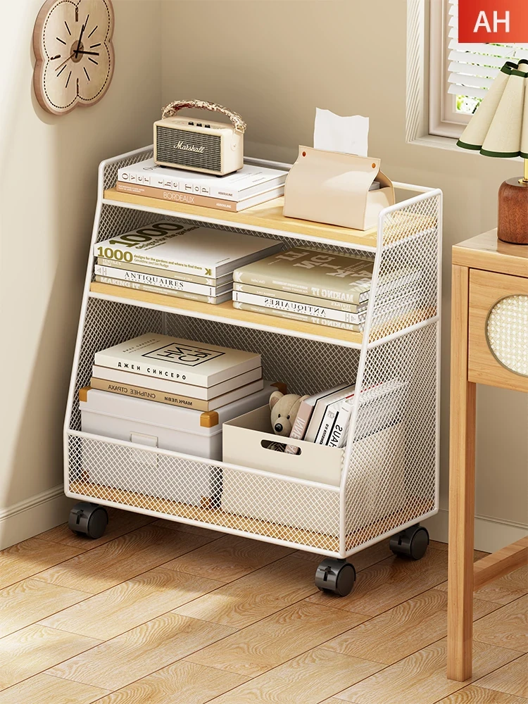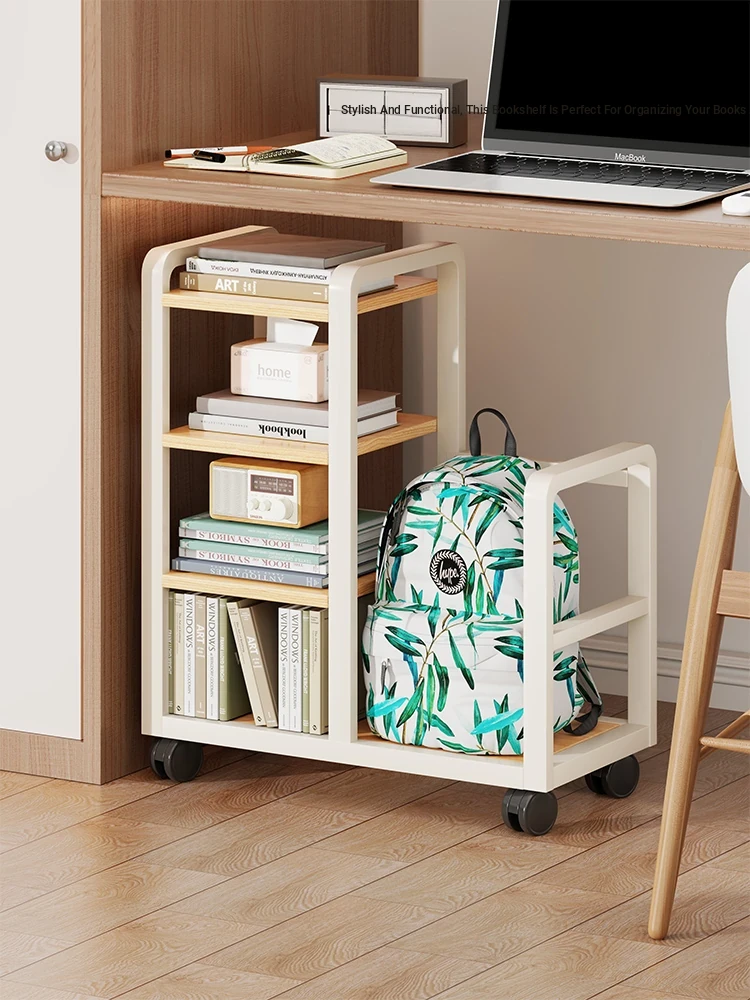 Mobile Rolling Storage Rack - Versatile Side Table Bookshelf for Floor, Perfect for Book Organization and Student Desk Use, Ideal Backpack Storage Solution