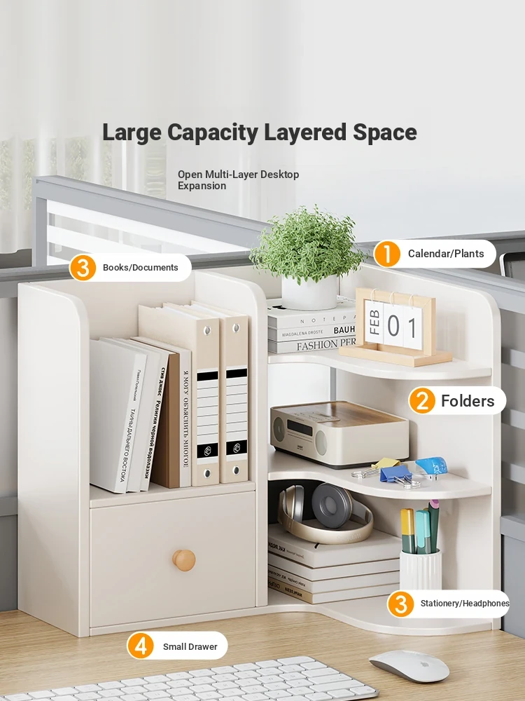 Corner Desktop Bookshelf - Multi-Tier Storage Organizer for Office Desk, Compact Bookcase for Students, Ideal Space-Saving Storage Solution