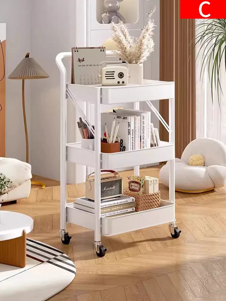 Foldable Bookshelf Cart with Wheels - Versatile Storage Rack for Bedroom Snacks and Kitchen Organization - Stylish and Mobile Solution for Easy Access and Space-Saving