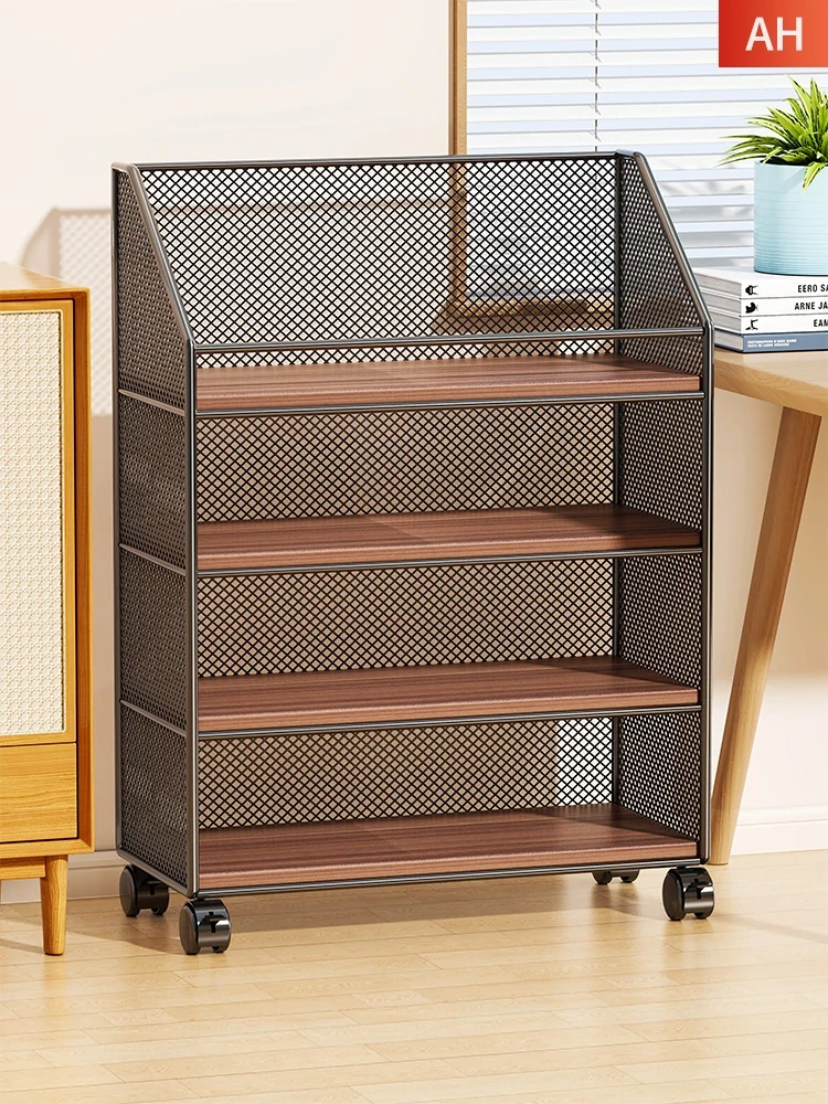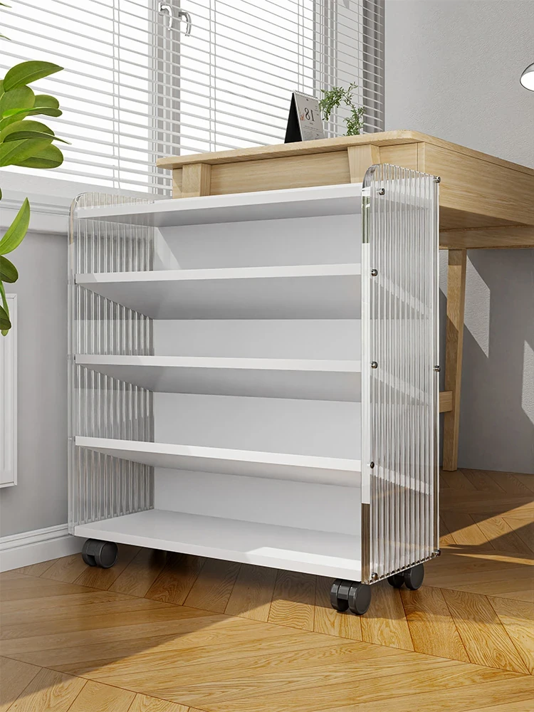 Mobile Office Desk Side Bookshelf - Multi-Layer Floor Bookcase & Versatile Rolling Cart for Workspace Storage Solution
