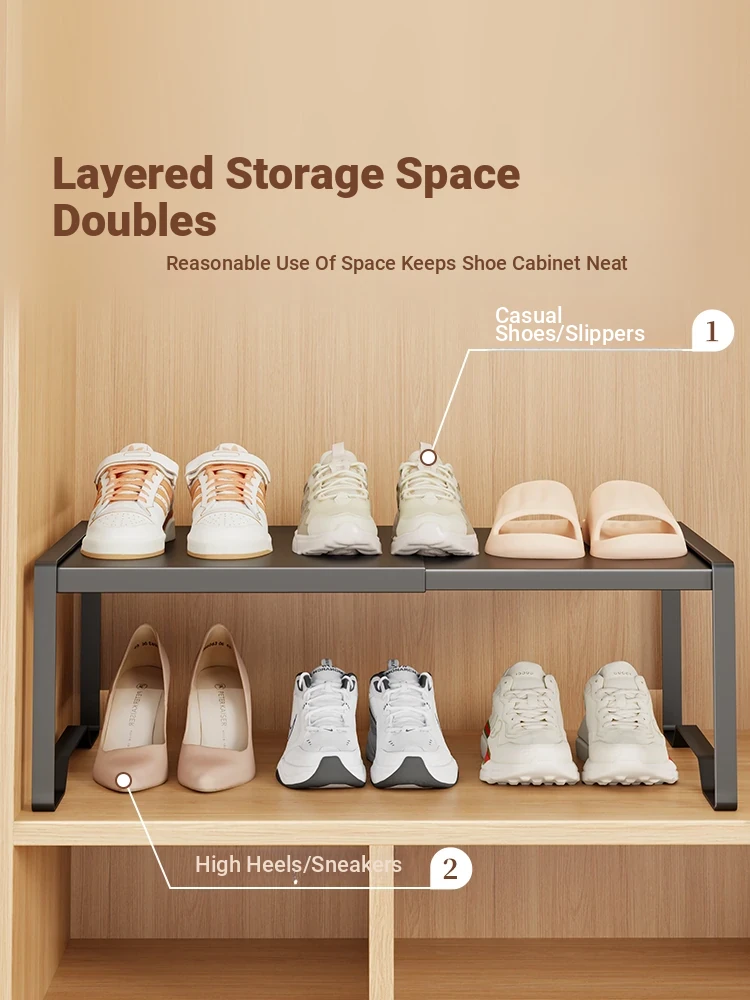 Space-Saving Expandable Shoe Rack with Tiered Shelves - The Ultimate Organizer for Shoes and Slippers, Perfect for Closet Storage and Maximizing Space