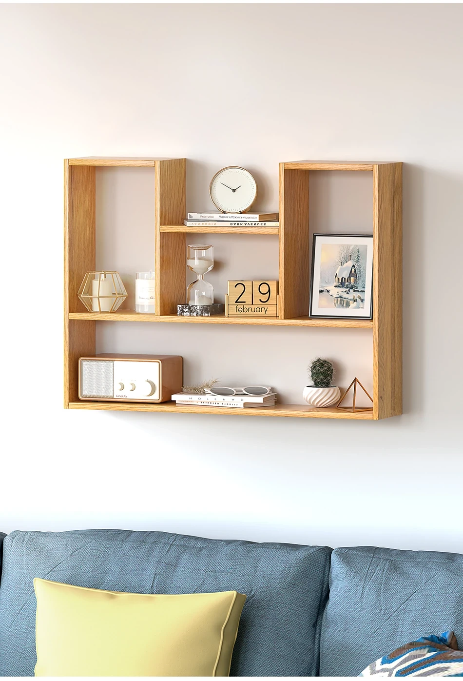 天然木材使用の壁掛け書棚!スタイリッシュな収納スペースで、お部屋をおしゃれに演出。機能的な壁面収納で、書籍や小物を美しく整理整頓。限られたスペースを有効活用し、暮らしをより快適に!
