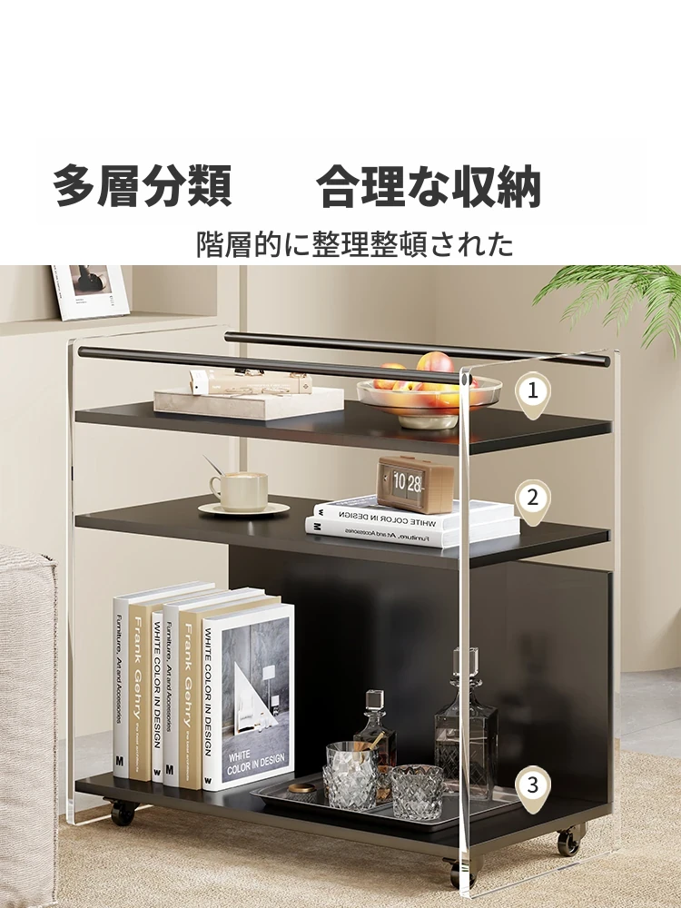 多機能・簡易移動式サイドテーブル!リビングにぴったりな多層収納カート、ソファの横に置いて便利に使えるおしゃれなティーテーブルです。お菓子や小物を手軽に収納して、居心地の良い空間を演出!