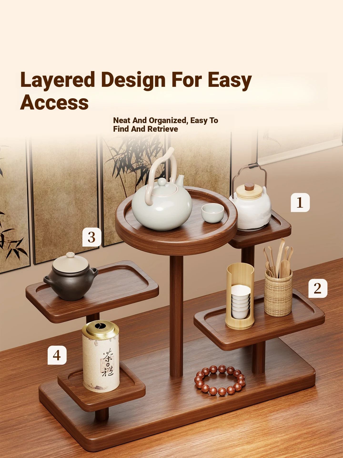 Vintage Chinese Style Display Shelf - Multi-Layer Tea Set Organizer with Yixing Teapot, Perfect for Showcasing Tea Accessories and Cups on Your Table