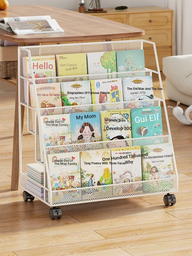 Kids' Bookshelf - Stylish Standing Storage Rack for Picture Books and Storybooks, Perfect for Living Room Reading Nook, Mobile Organizer for Bedrooms and Playrooms