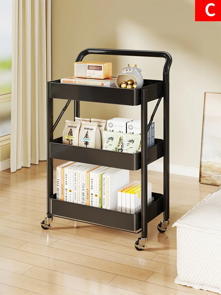 Foldable Bookcase with Wheels - Portable Multi-Layer Storage Cart for Living Room, Easy Assembly Bookshelf for Home Reading and Organization