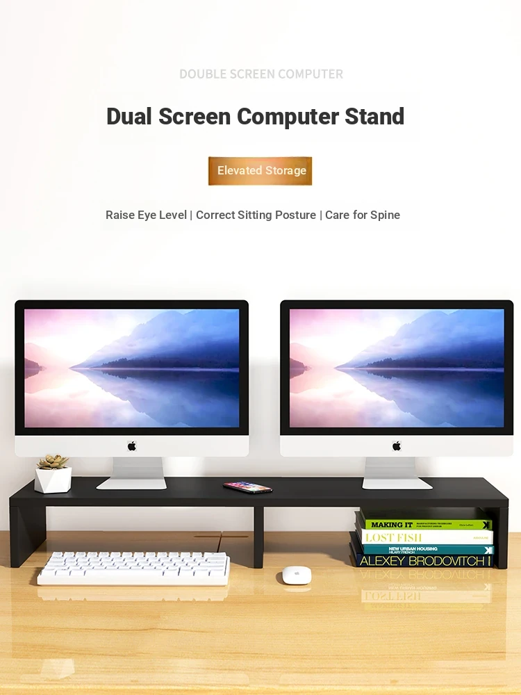 Dual-Screen Adjustable Monitor Stand - Extended Version, 30" Wide Desktop Base for Dual Displays, Perfect for Enhanced Workspace Organization and Comfort