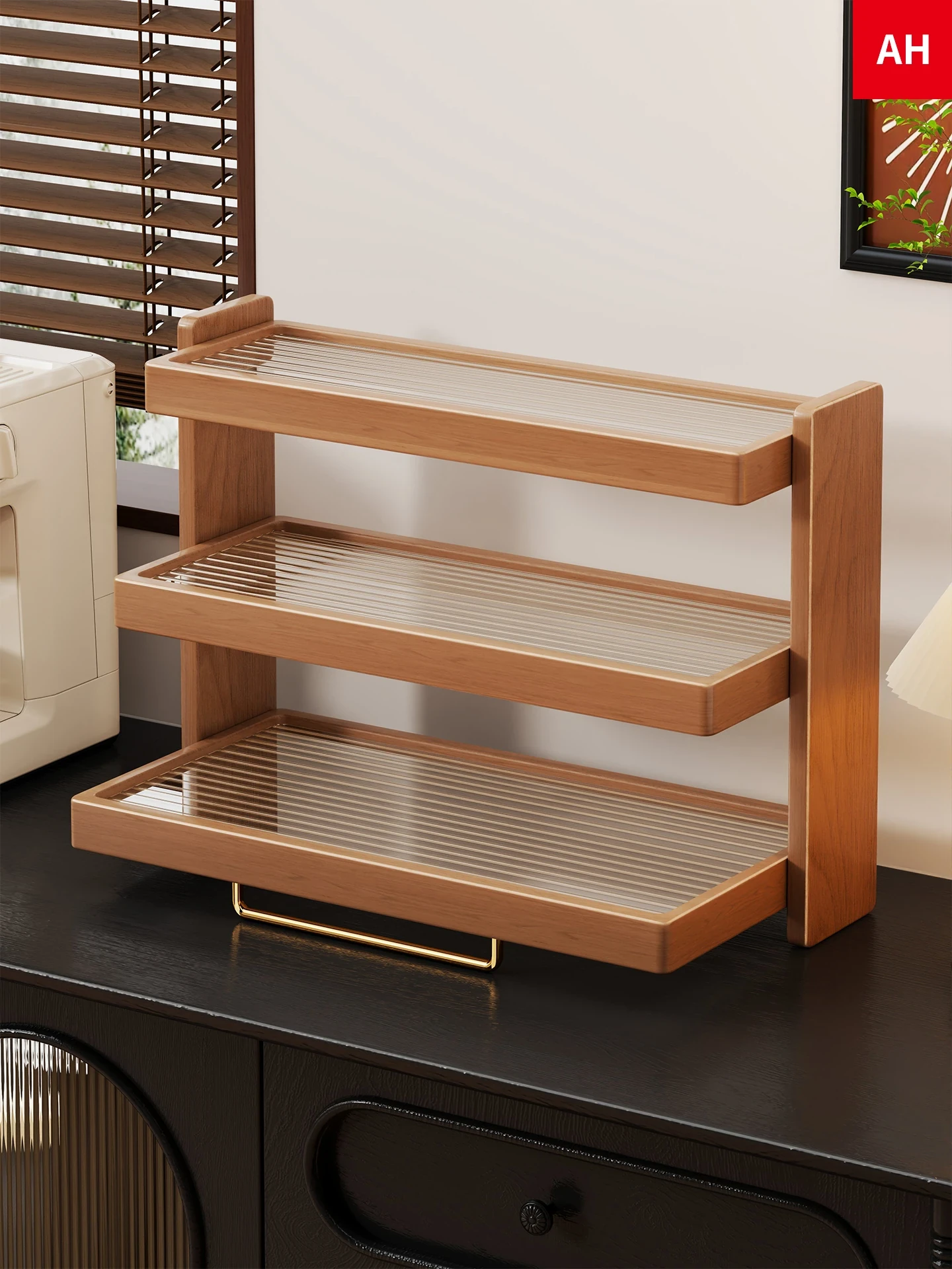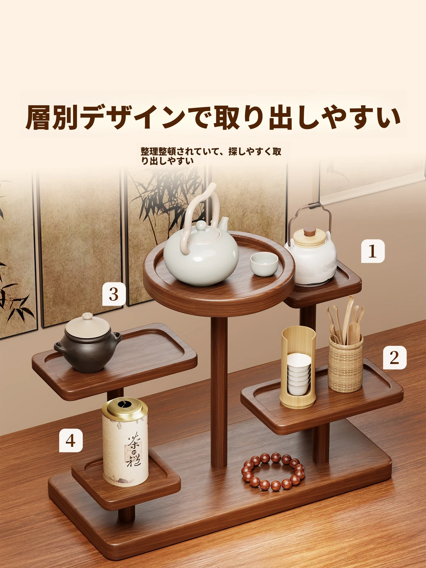 レトロ中式博古架 おしゃれなデスクトップ収納棚 紫砂急須や茶具を美しくディスプレイ!多層構造で機能性抜群のティーカップスタンド お部屋を華やかに演出します!