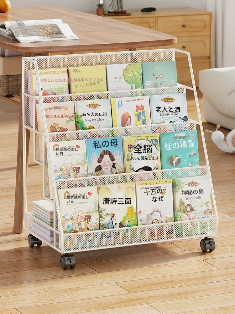 移動可能なキャスター付き書籍収納ラック!学生デスク脇や教室に最適な多段式スタンド。すっきり整理整頓して、学びをサポートします!