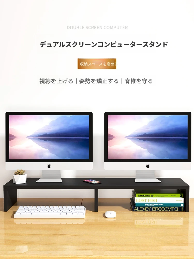 デスクトップモニター用スタンド - 高さ調整可能なデザインで快適な作業環境を実現!デスク周りをスッキリ整理できる収納機能付き。オフィスや自宅での使用に最適!