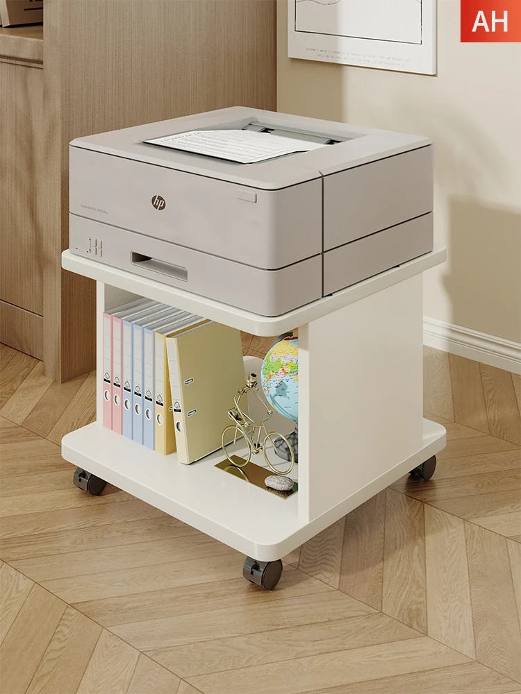 オフィス用プリンターシェルフ - ダブルレイヤーの床置きコピー機スタンド、移動可能なファイル整理ラックで、デスク下にぴったりフィット!効率的なスペース活用で、仕事環境を整えましょう。
