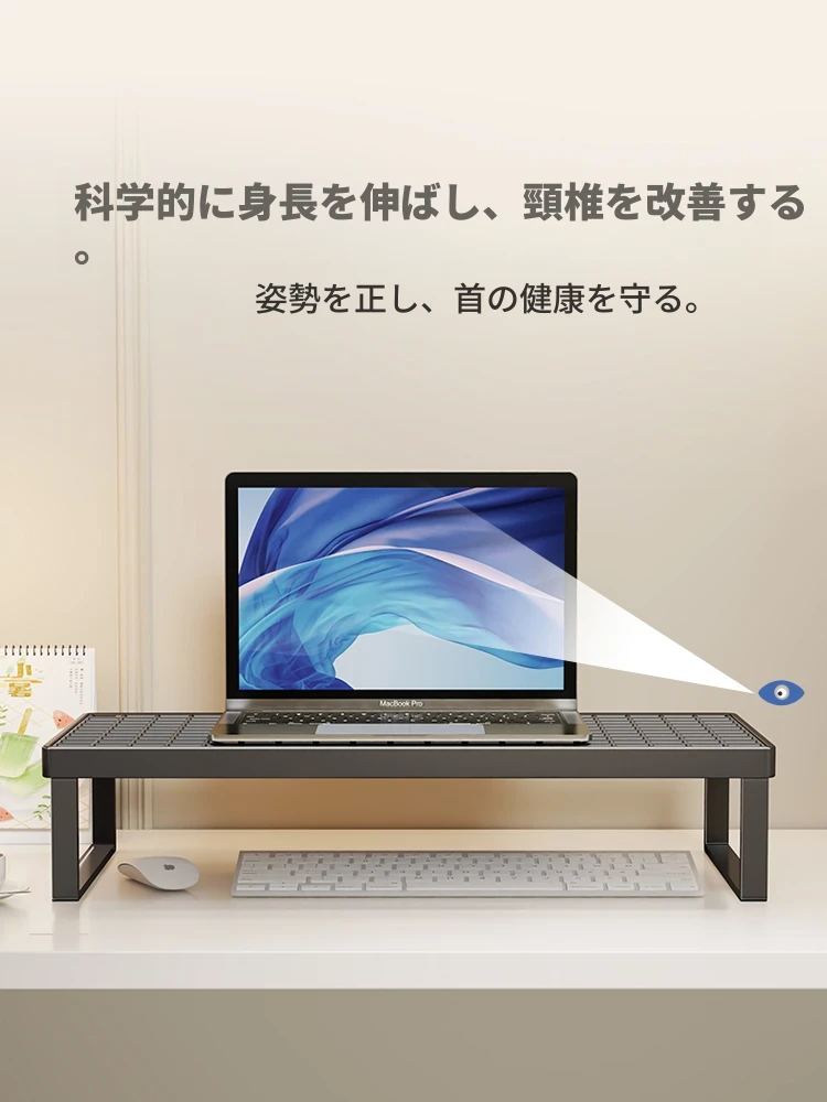 オフィスデスク用ノートパソコンスタンド - 熱を逃がす底座付き!作業スペースを有効活用し、ディスプレイを快適な高さに調整。スタイリッシュで機能的なデザインで、効率的な作業環境を実現します!