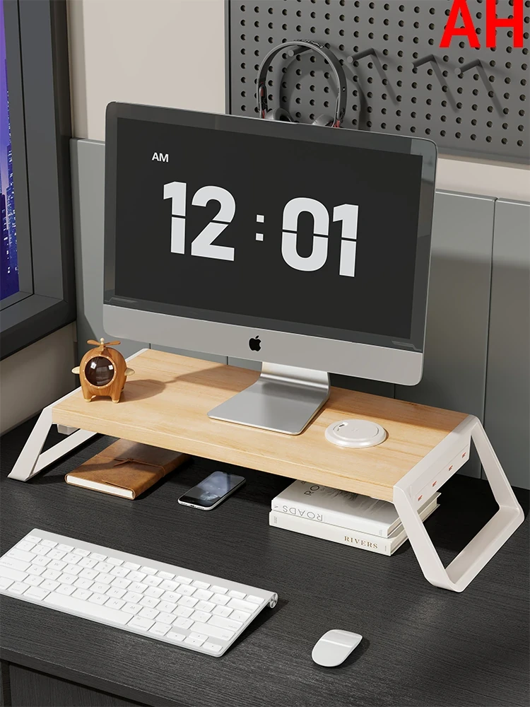 デスクトップモニター用スタンド - 省スペース設計でオフィスをスッキリ整理!デスクトップPCやノートパソコンに最適な収納ラック。快適な作業環境を実現!