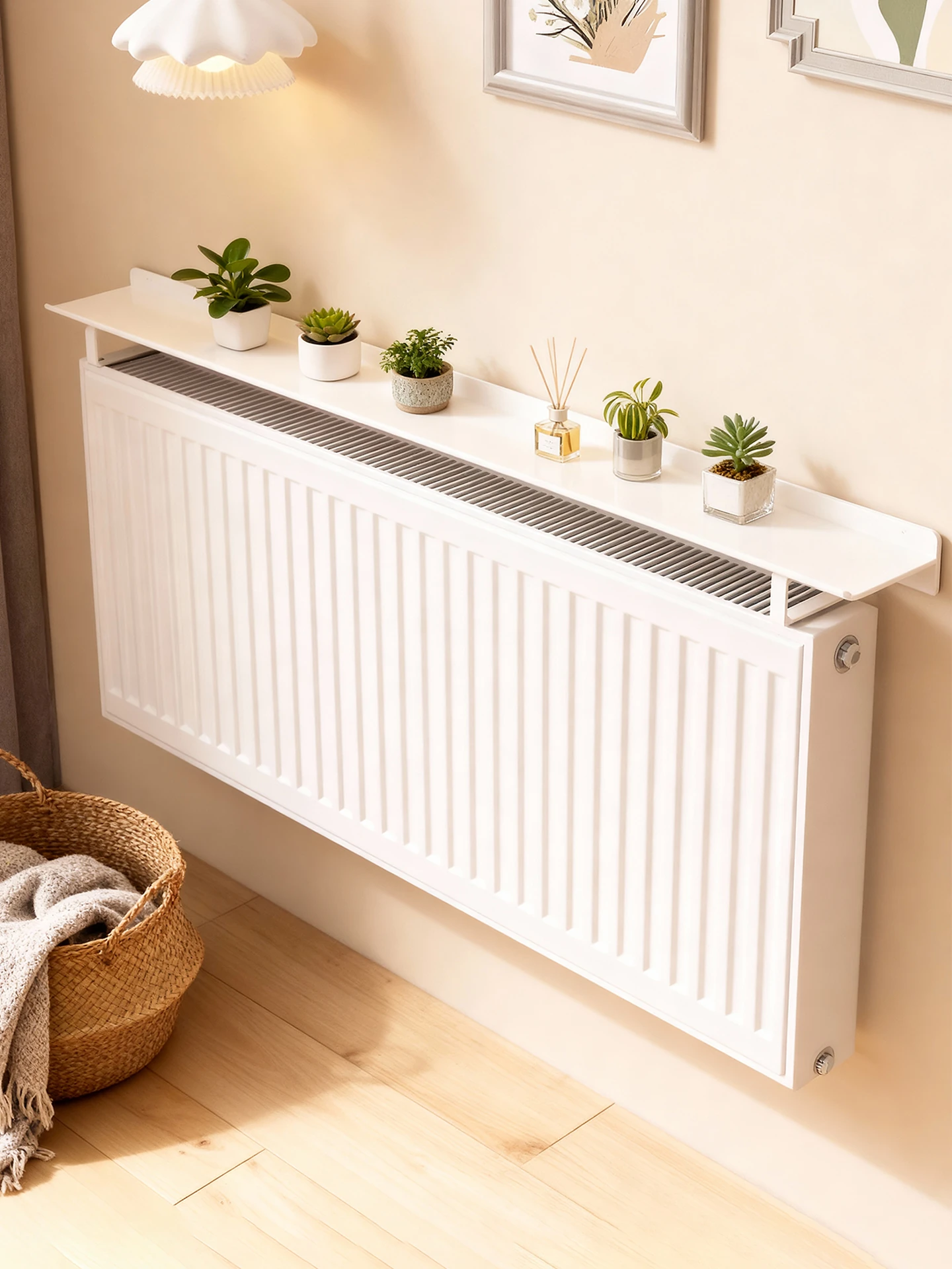 暖房の上に取り付ける便利な収納ラック!壁掛けの一字型カバーで、暖房パイプの上をホコリから守ります。お家のインテリアにぴったりな収納神器です!