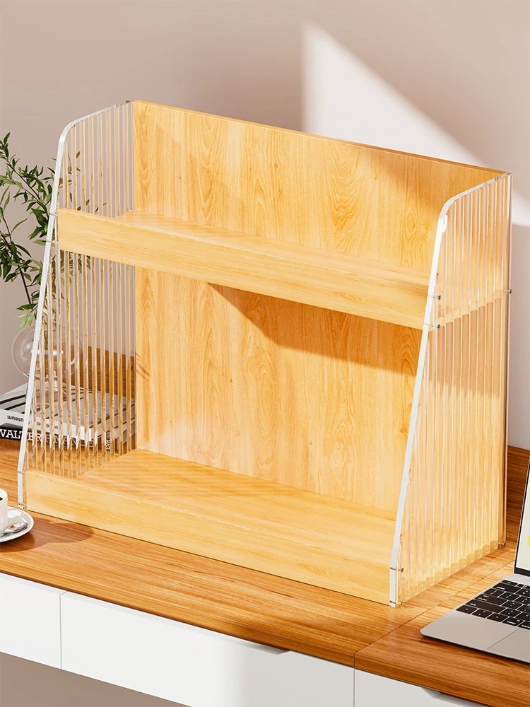 デスク上のアクリル書棚 小型ファイル収納ボックス オフィスに最適 女子におすすめの整理整頓アイテム!机上をスッキリさせる便利グッズ!