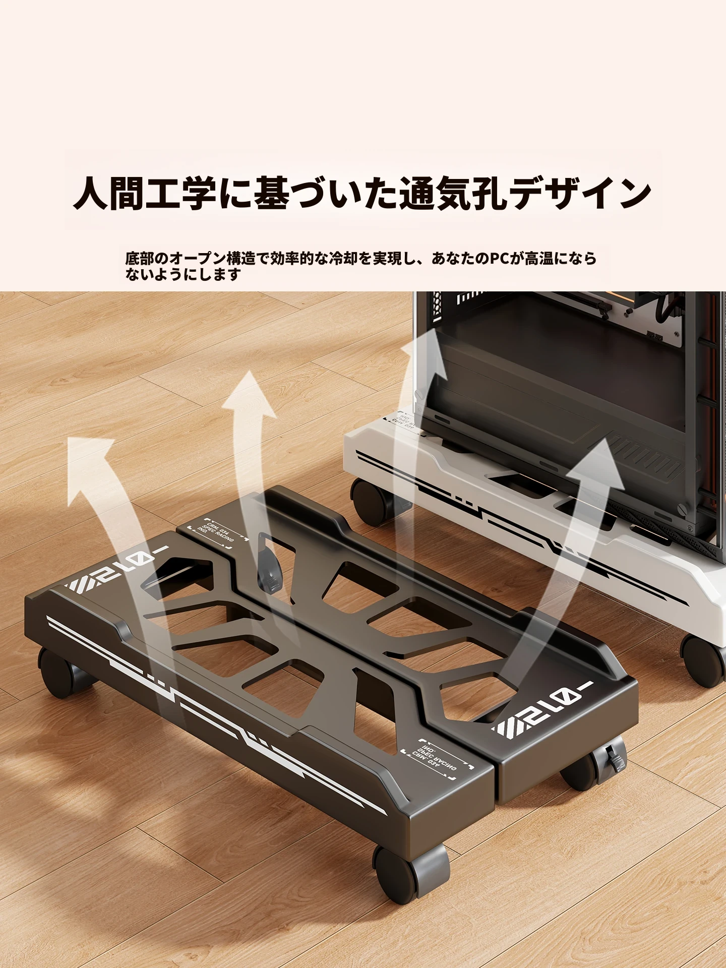 デスクトップPC用 高さ調整可能なケーススタンド - オフィスに最適な移動式冷却ラック!あなたの作業スペースを快適に保ち、効率的な熱放散を実現します。