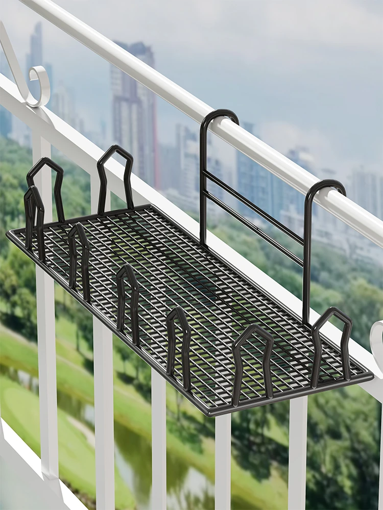 バルコニー用ガーデンフェンス&ハンギングプランターラック - 大型花鉢にも対応!緑の植物を美しく飾る、スタイリッシュで機能的な空間を演出します。バルコニーの手すりに簡単取り付け、あなたの暮らしに彩りを添えます!