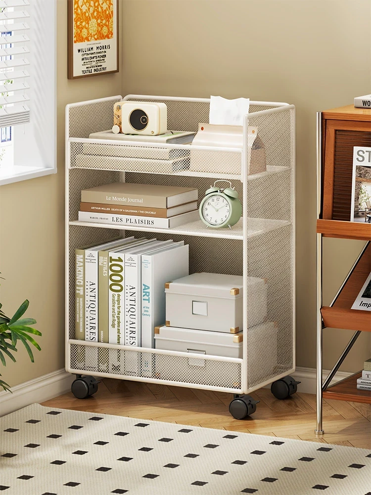 移動式収納カート - 学生必見!デスク下にぴったりなキャスター付きのバッグ置き場。書籍や文房具をすっきり整理できる簡易書架。勉強空間をもっと快適に!