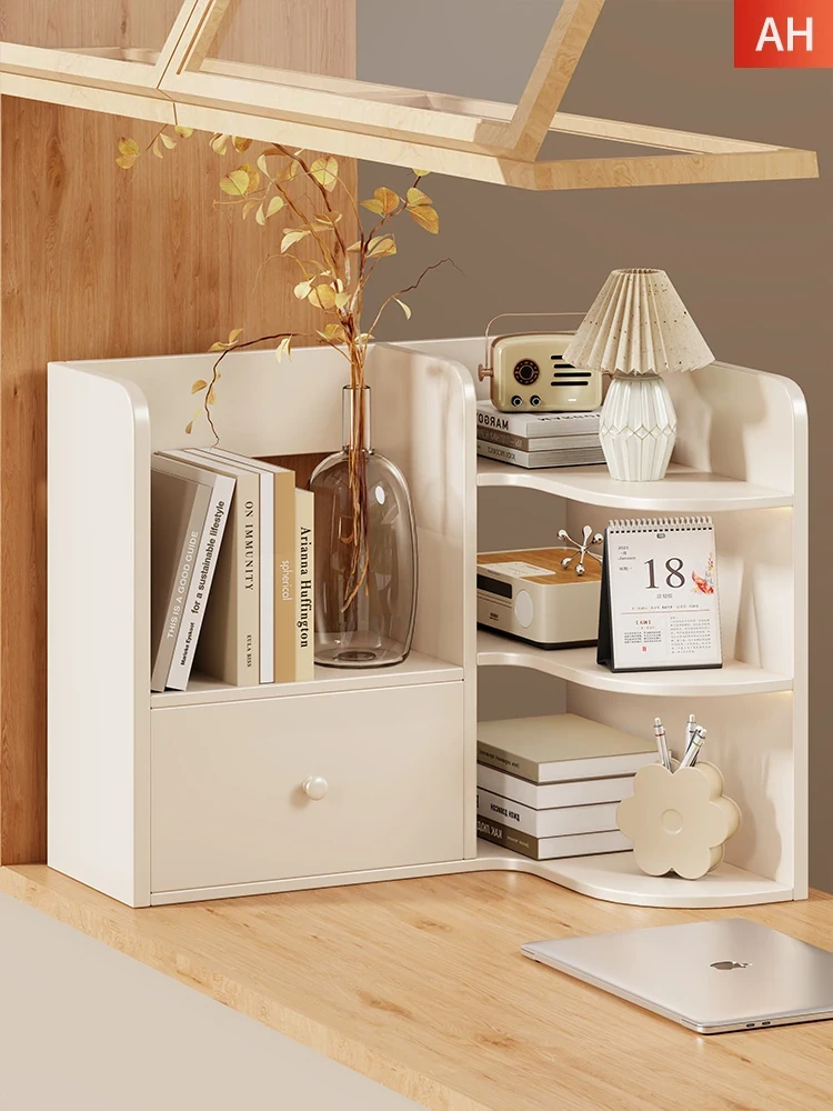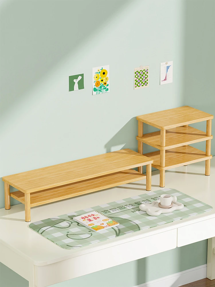 シンプルなデスク上収納棚 - 学生寮や子供部屋に最適な多段式小書棚!デスク周りをスッキリ整理する便利な収納ラック。家庭用にもピッタリ!