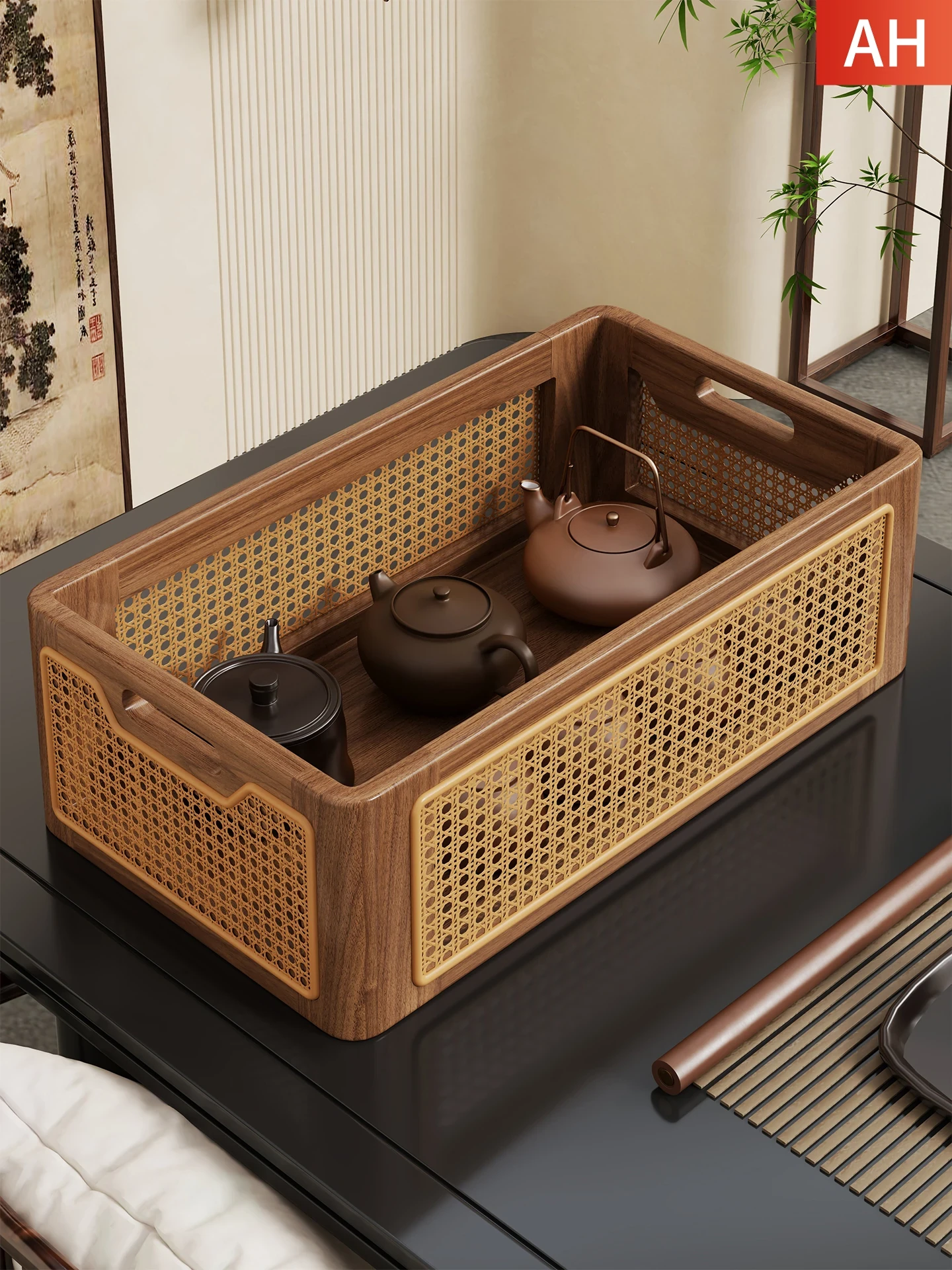 無垢材使用!オフィスにぴったりな茶器スタンド - 茶道具やカップを美しく収納できる中式デザイン。おしゃれな博古架で、リラックスしたティータイムを演出します!