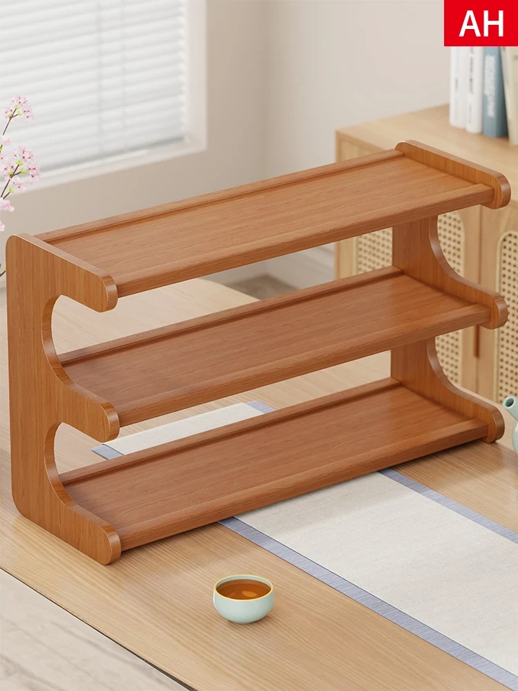 デスク用骨董風茶器デコレーションラック - 小型ティーカップスタンド付き、茶室に最適な収納&ディスプレイラック!あなたの茶具を美しく整頓し、魅力的な空間を演出します。