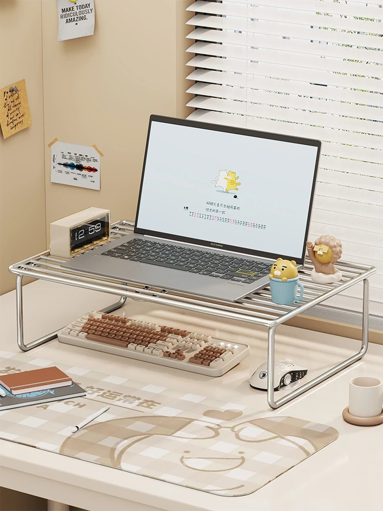 ステンレス製ノートパソコンスタンド 家庭用小型デスクトップゲーム用 高さ調整可能 放熱効果抜群のデザイン おしゃれな空気孔付き 仕事やゲームに最適!
