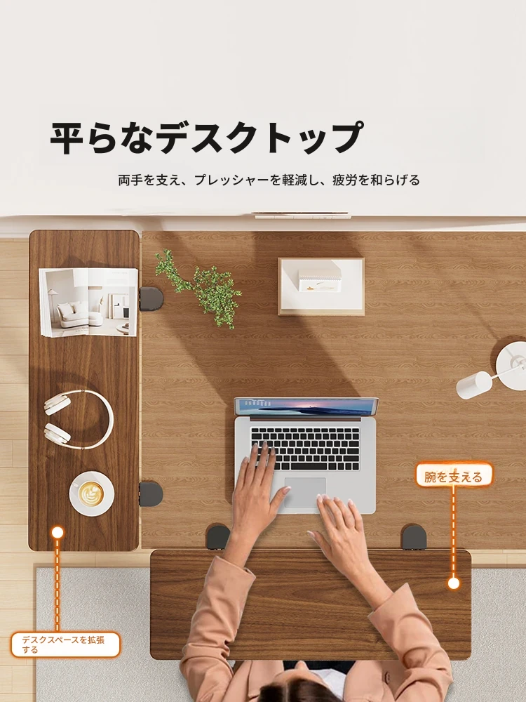折りたたみ式デスク延長ボード - 穴あけ不要のアームサポート付き!作業スペースを広げ、快適なデスク環境を提供する万能アイテム。オフィスや自宅での作業を効率的にサポートします!