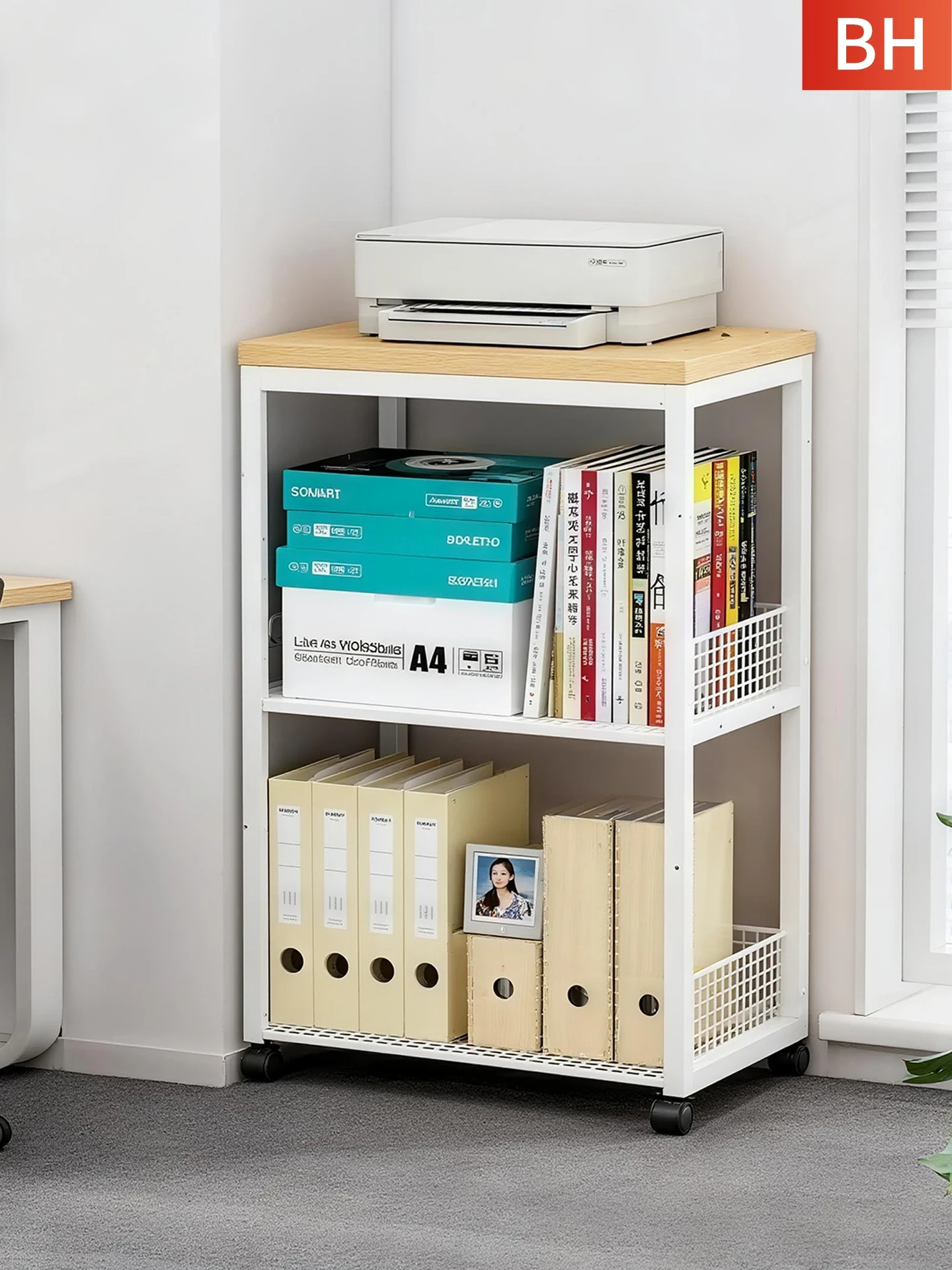 オフィス用プリンターラック 移動可能な収納キャビネット 多段式キャスター付き 小型サイドキャビネット デスク下スペースを有効活用!おしゃれで実用的な収納ソリューション!