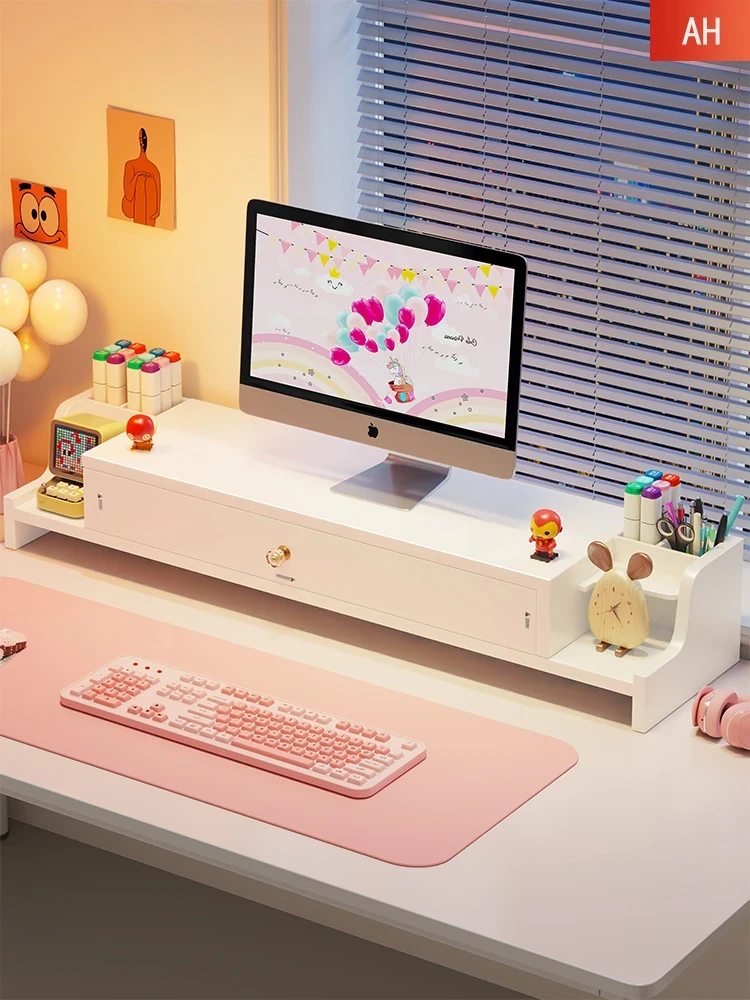 デスク用モニター台、引き出し付き!オフィスをスタイリッシュに変身させる省スペース収納ラック。快適な作業環境を実現する必需品!
