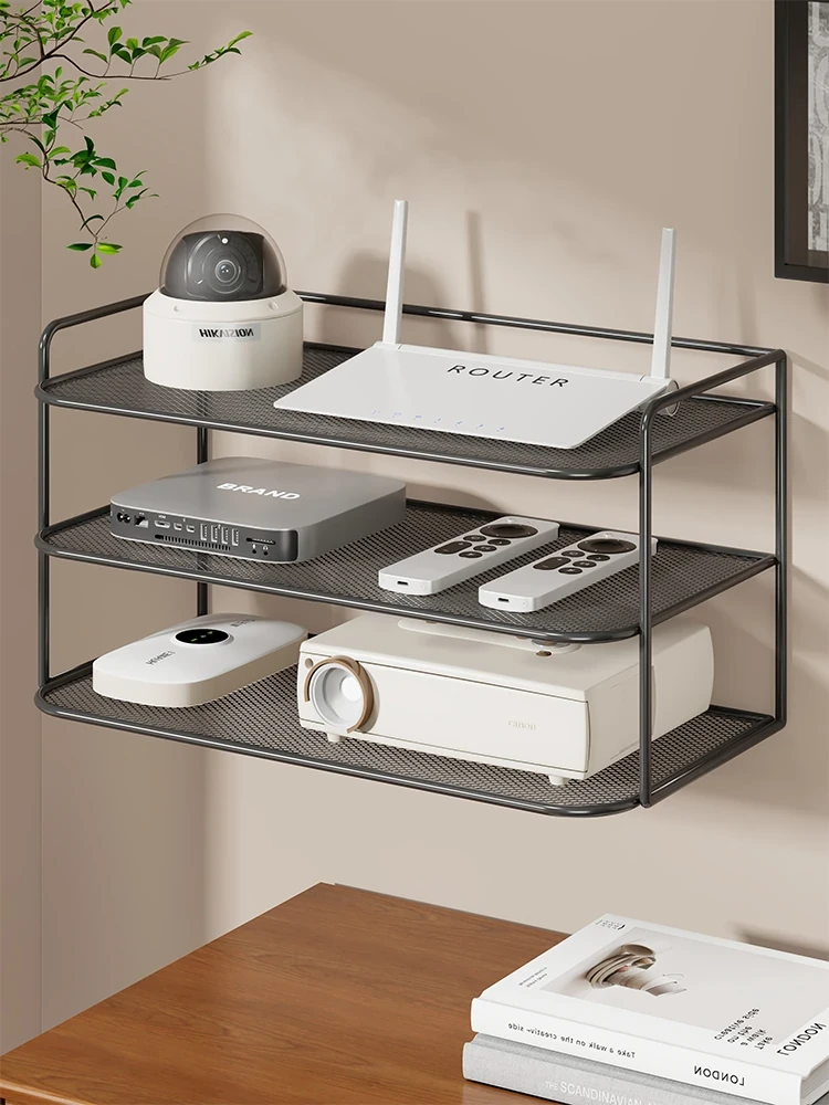 壁に穴を開けずに取り付ける多機能収納シェルフ!寝室やベッドサイドに最適なウォールシェルフ、ルーターや小物をスッキリ整理。おしゃれで便利な空間作りを実現!