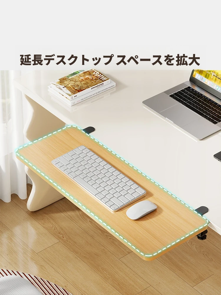 穴あけ不要!折りたたみ可能なパソコンデスク延長ボード - オフィスや学習に最適な広々デスクスペースを実現!快適なアームサポートで作業効率アップ!